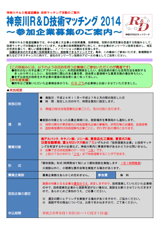 【問い合わせ先】神奈川R&D推進協議会事務局