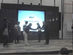 発表会当日には、厚木商工会議所会員事業所2社の代表者も出席し、制作担当学生によるプレゼンの後、webサイトの仕様書やデータの納品式が行われました。