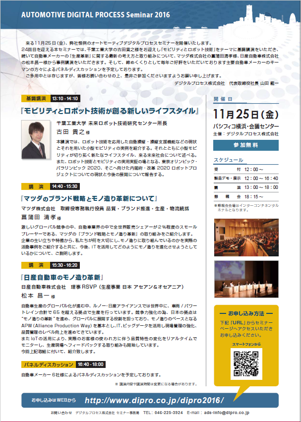 【会員企業様より】オートモーティブデジタルプロセスセミナー2016開催のお知らせ