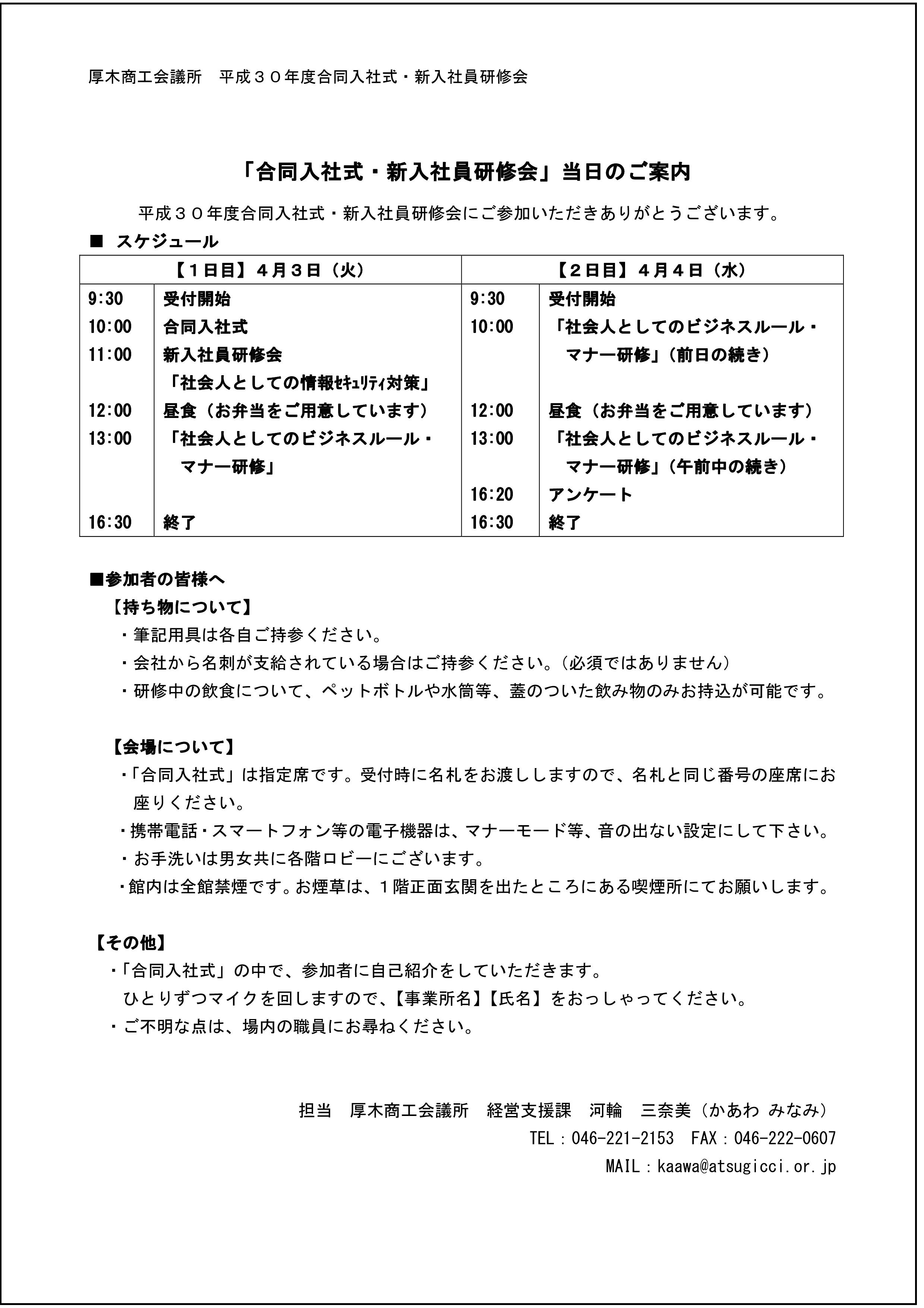 平成30年4月3日・4日開催の「合同入社式・新入社員研修会」にお申し込みいただきありがとうございます。