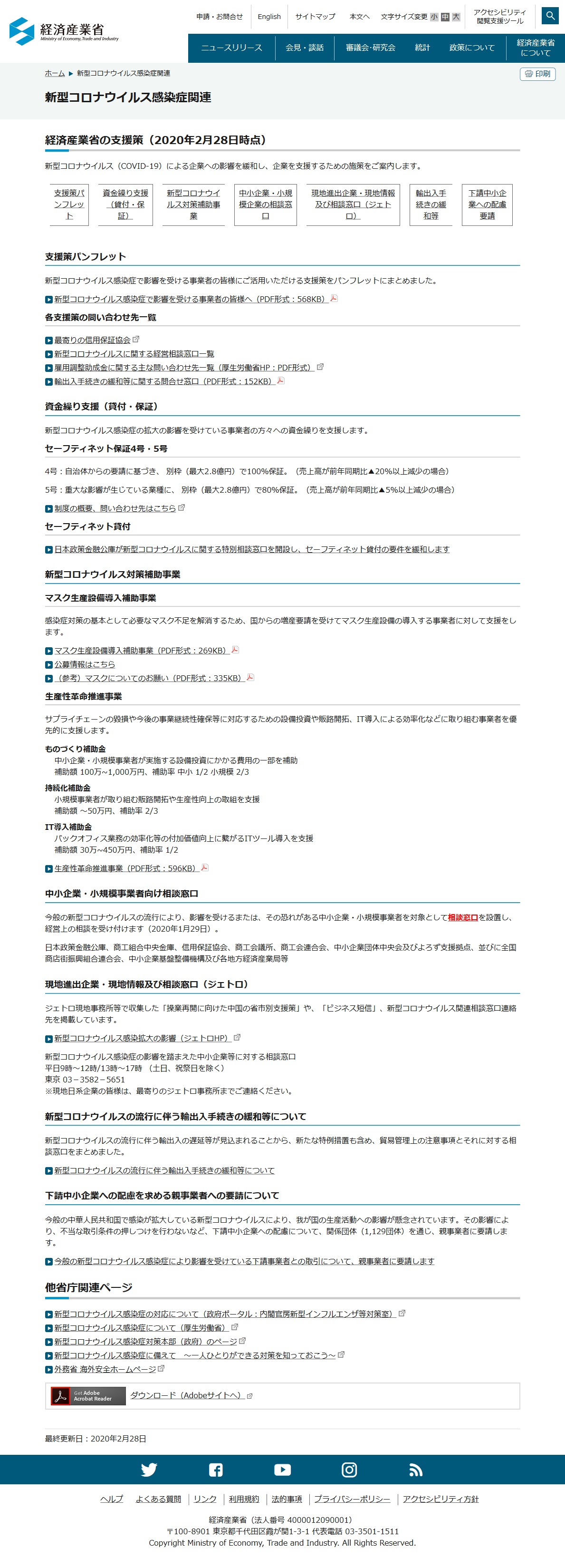 新型コロナウイルス感染症の影響を受ける事業者への支援策(経済産業省)