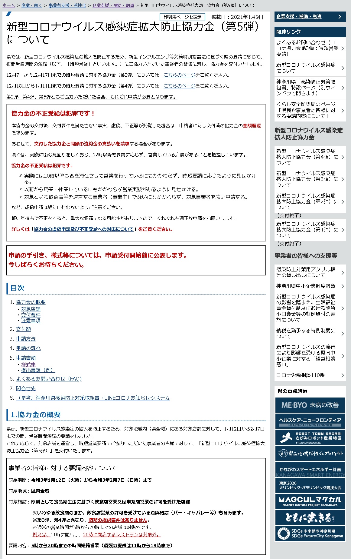 神奈川県「新型コロナウイルス感染症拡大防止協力金(第5弾)」のご案内