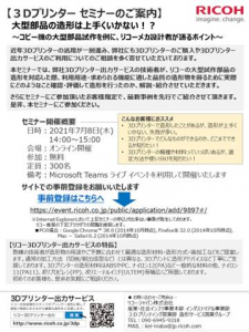 本セミナーでは、弊社3Dプリンター出力サービスの技術者が、リコーの大型試作部品の造形を対応した際、