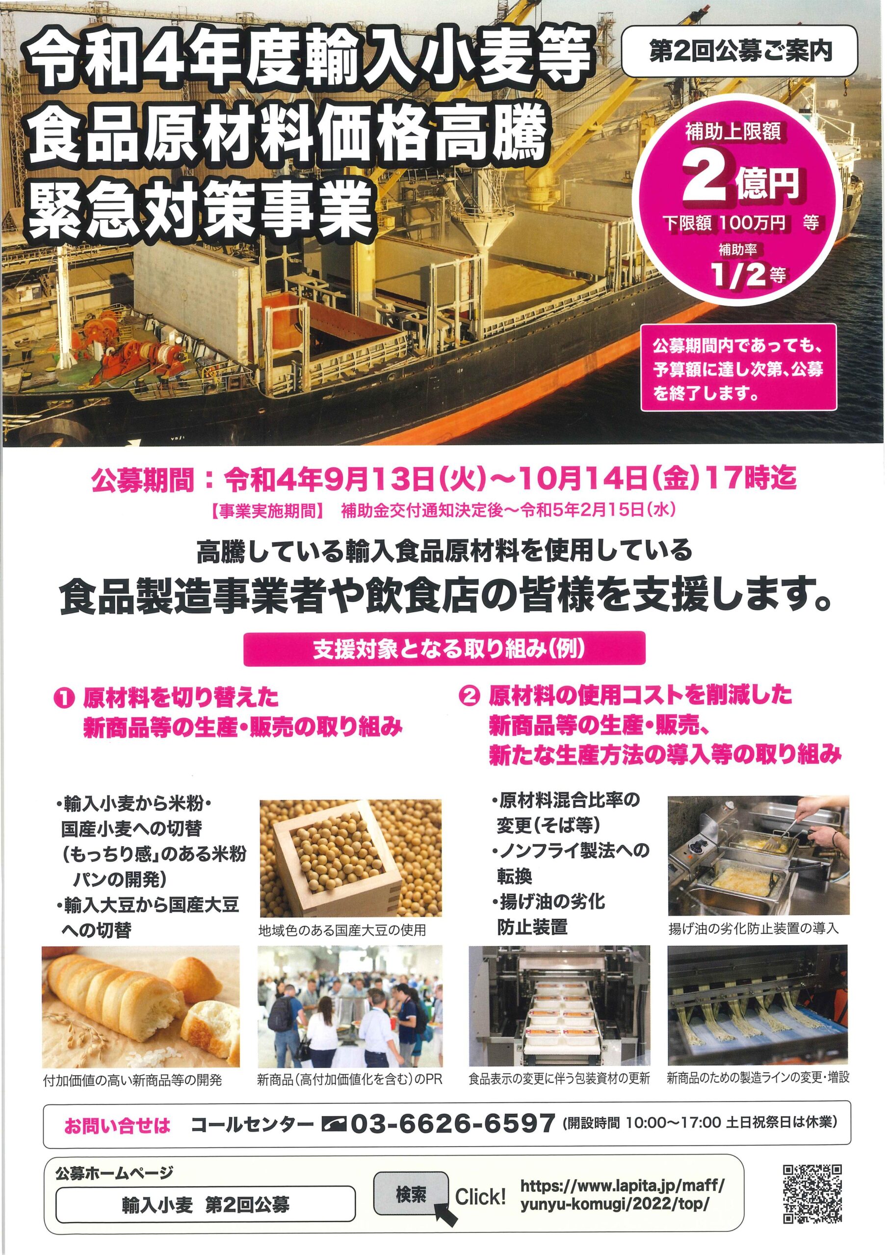 農林水産省では、高騰している輸入食品原材料を使用している食品製造事業者や飲食店の皆様を支援するため、